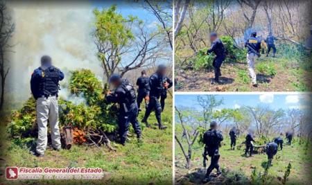 La FiscalÃa General del Estado informó de manera oficial que en el marco del Programa de Seguridad Nayarit 2014, la PolicÃa Nayarit y la PolicÃa Federal desplegaron un operativo que permitió la localización de cinco plantÃos de marihuana en el municipio de Ixtlán del RÃo, donde se destruyer...