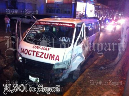 La noche de este sábado se suscitó un aparatoso accidente sobre la Av. Insurgentes de Tepic, en el que una combi se volcó, arrojando como saldo tres lesionados, entre ellos un bebé de 5 meses de edad. Sobre los hechos se conoce que el conductor de una combi con número económico GCTX-239, i...