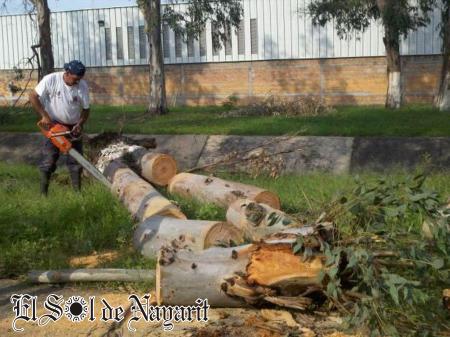 Durante la tarde de este sábado se registraron fuertes vientos en la capital nayarita, los que terminaron por derribar cuatro árboles, dos de ellos por Av. Insurgentes, uno de Ciudad del Valle y otro más en Av. Rey Nayar. Afortunadamente la caÃda de estos árboles solo ocasionó daños materi...