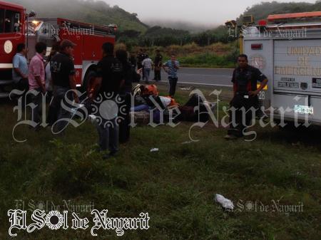 Un nuevo y trágico accidente de un camión de pasajeros se registra nuevamente en el estado de Nayarit, los hechos se suscitaron cerca del poblado de Tequepexpan municipio de Santa MarÃa del Oro lugar donde perdió la vida una persona y 37 resultaron lesionados. Los hechos se registraron la mad...