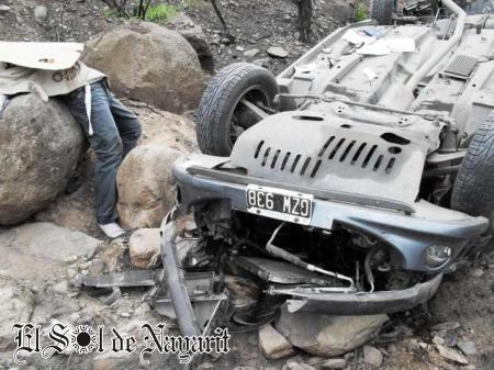 Tres personas, hermanos entre si, viajaban a bordo de una camioneta, el chofer pierde el control a causa del exceso de velocidad, perdiendo el control de la unidad y terminando por caer a un barranco; dos murieron. EL ACCIDENTE: Aproximadamente a eso de las 19:00 horas de este sábado, elemento...