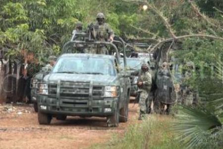 Tras el hallazgo de dos camionetas baleadas y el aseguramiento de equipo táctico en la localidad de La Resolana, personal miliar continúa realizando aseguramientos en las inmediaciones de dicho poblado. En un comunicado emitido por la 13/a Zona Militar, el dÃa de ayer personal militar en recon...