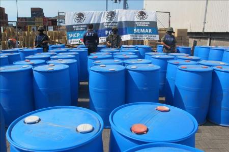 En un operativo desarrollado por la SEMAR Y la PGR en Manzanillo, Colima se logro decomisar 32.6 toneladas de químicos para drogas. Más de 32 toneladas del precursor químico metilamina, utilizado para la elaboración de drogas sintéticas, fueron incautadas en los patios del puerto interior de...