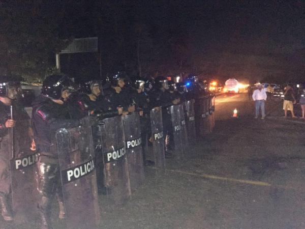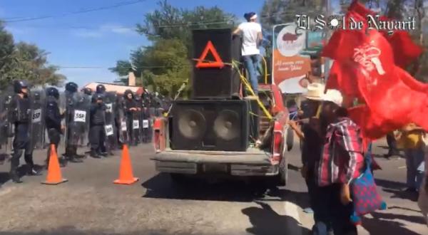 Elementos del cuerpo antimotines de la Policía Estatal arribaron a hasta el boulevard Tepic - Xalisco, en los límites entre ambos municipios, donde un grupo de integrantes de la agrupación Antorcha Campesina mantenía bloqueado el paso. Minutos antes de la llegada de los uniformados ya sobrev...