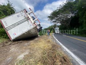 Vuelca trailer cargado con mantequilla en la carretera libre Tepic-Mazatlán