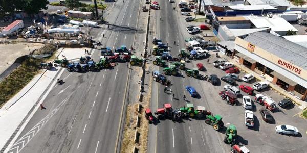 En estos momentos, se encuentra bloqueada la autopista Guadalajara-Tepic, los agricultores taparon el paso a los vehículos usando decenas de tractores.