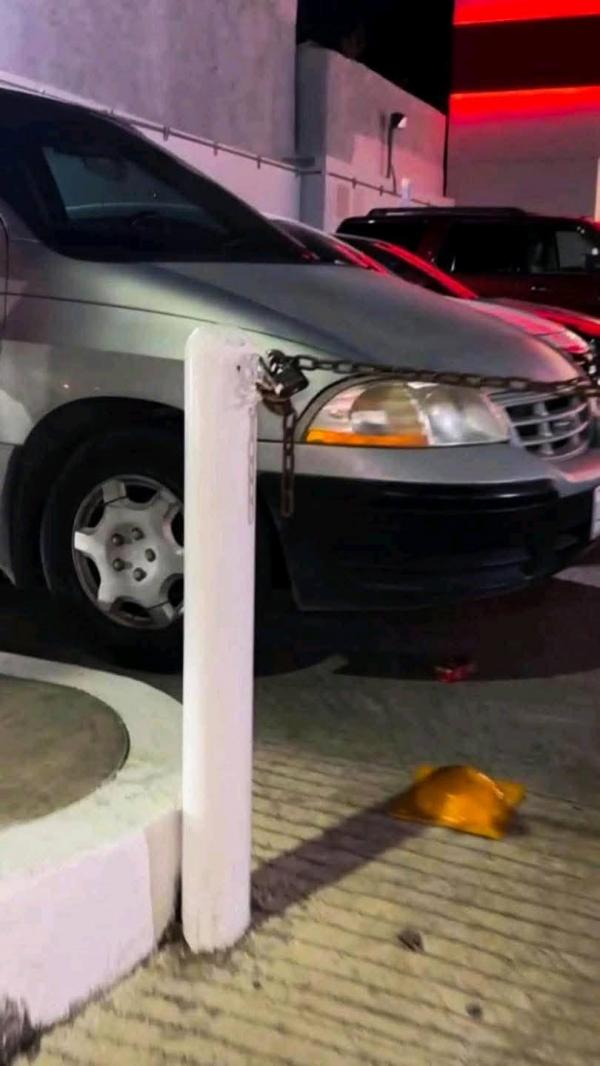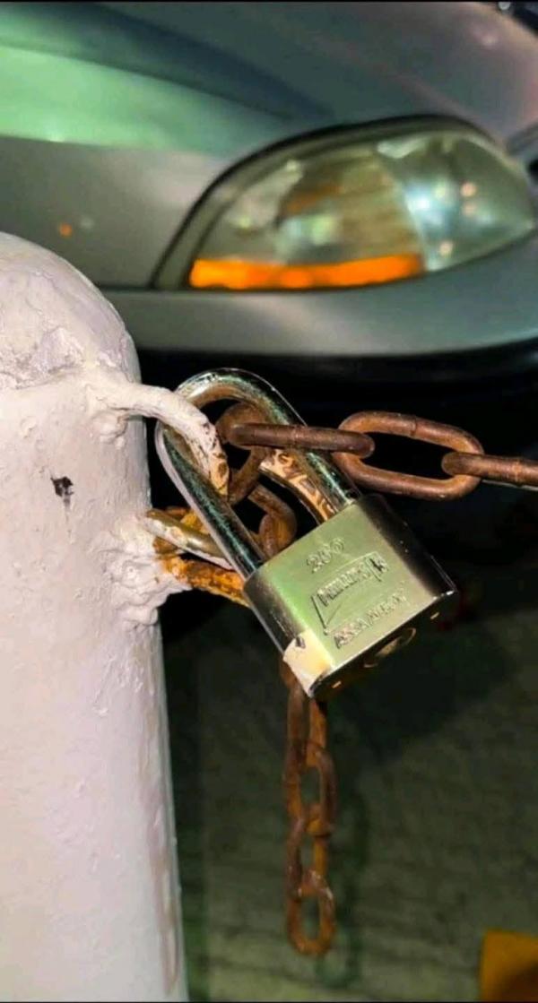Sin embargo, al llegar horas después encontraron una cadena que atravesaba el estacionamiento de lado a lado y con candado, impidiendo el ingreso y salida de vehículos, esto debido a que el banco cerró sus puertas así como el estacionamiento.