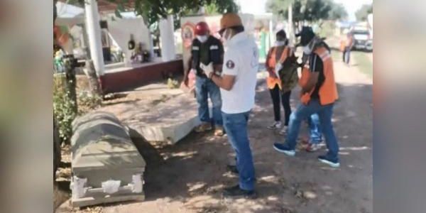 Se reportó a la línea de emergencias la presencia de una caja funeraria, la cual aparentemente habría sido desenterrada y luego abandonada en el mismo panteón.