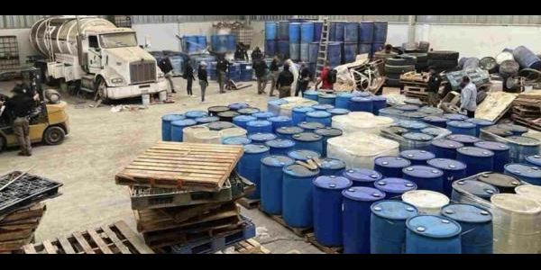 En los operativos fueron asegurados aproximadamente 300 bidones y tambos con precursores químicos, más de 2 mil costales con una sustancia granulada y una pipa con 7 mil litros de hidrocarburo.