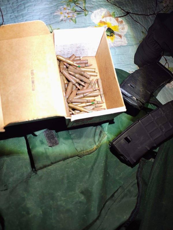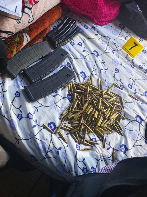 Durante la diligencia, los elementos uniformados aseguraron un arma de fuego larga, un artefacto explosivo,15 cargadores, 545 cartuchos, dos chalecos tácticos, tres motocicletas, documentación y tres inmuebles.