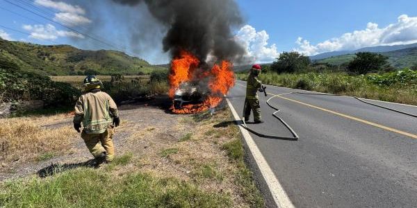 Se reportó este sábado el incendio de vehículo sobre la carretera Federal 15 libre Tepic - Guadalajara, sobre el kilómetro 147, a la altura de la comunidad de Zoatlán, municipio de Ahuacatlán.