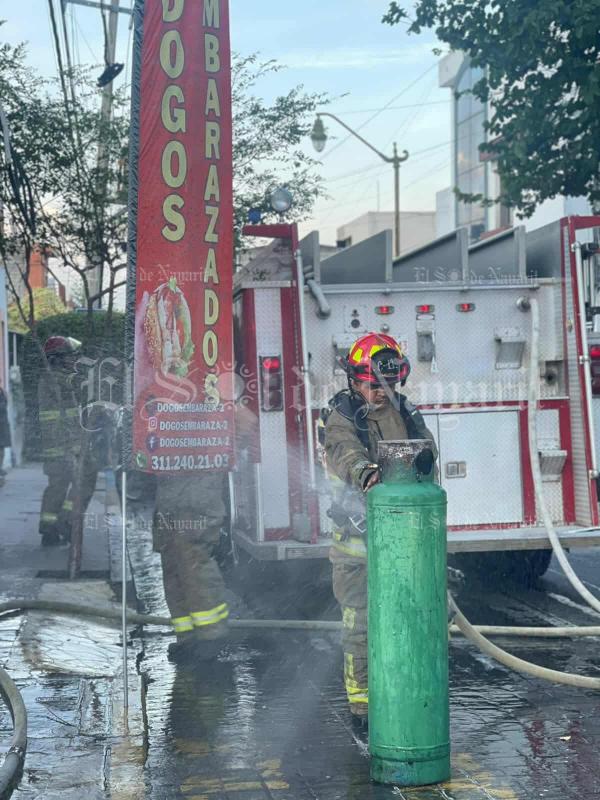 Se refiere que se trata del negocio de hot dogs de nombre Dogos Embarazados, donde una manguera del cilindro de gas se rompió e hizo un flamazo, posteriormente, comenzó un incendio en el area de la cocina.