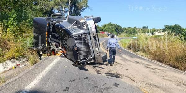 Se trata de un trailer en color negro con cargamento de cartón, señalan que mientras circulaba sobre una curva, la unidad cedió ante el peso y terminó volcando sobre su costado derecho.