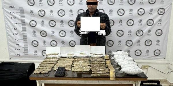 Al momento de la detención, las autoridades aseguraron una maleta y una bocina que en su interior contenía siete paquetes con clorhidrato de metanfetamina, con un peso de tres kilos 132 gramos 500 miligramos y mil 26 cartuchos de diferentes calibres.