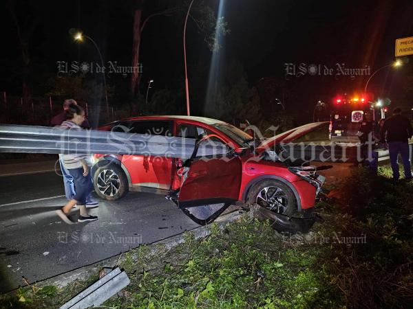 Se trata de un vehículo de la marca Kia en color tinto, de acuerdo con la información, la conductora circulaba a exceso de velocidad cuando perdió el control de la unidad y se impactó de frente contra la barrera metálica de contención.