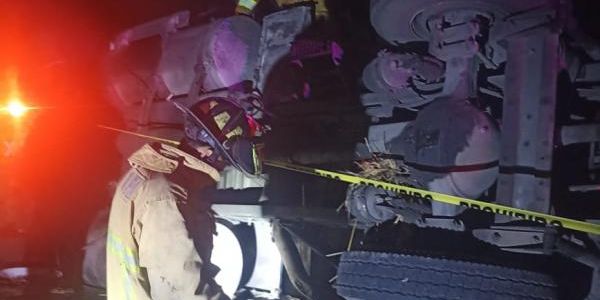 Elementos de Protección Ciudadana y Bomberos tomaron informe del hecho y se condujeron al lugar, donde se encontró un tráiler de la marca Internacional, modelo 2008, en color blanco y un semiremolque de la marca Utility, modelo 2001, mismo que estaba volcado sobre la carretera.