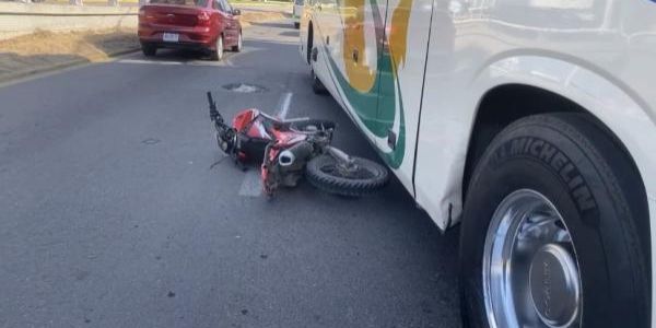 Al menos dos menores de edad resultaron heridos este martes derivado del un percance en el que se vieron involucrados, una motocicleta y un autobús Vallarta Plus.