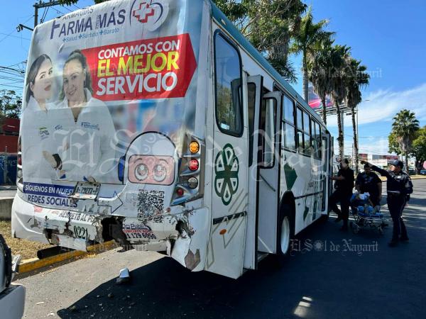 Se registró un accidente entre dos camiones urbanos este jueves sobre el Boulevard Luis Donaldo Colosio y la avenida Principal en la capital nayarita.