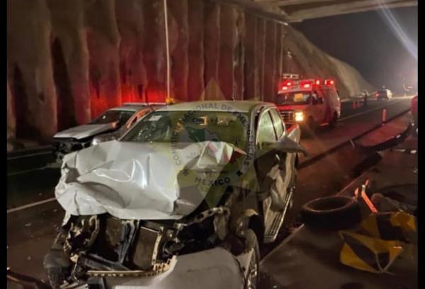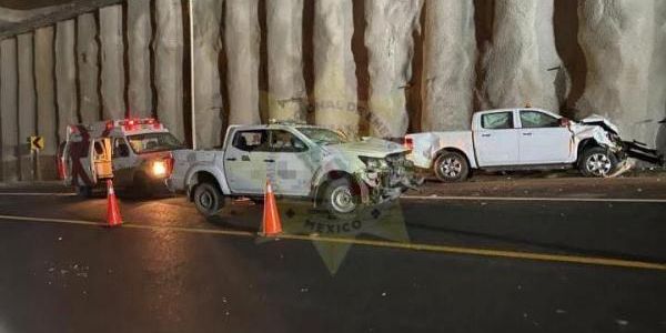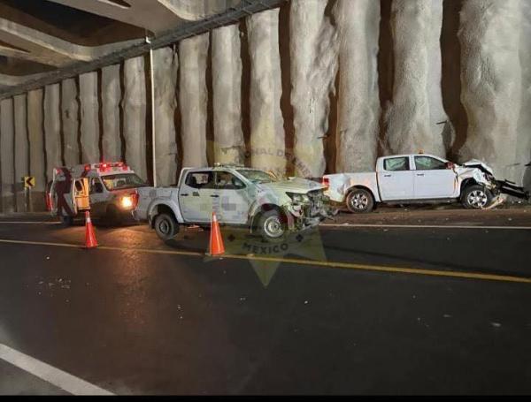 El percance ocurrió a la altura del kilómetro 14 en el túnel falso, se vieron involucradas dos camionetas pertenecientes a la propia autopista, una unidad de auxilio vial y otra de la empresa constructora "Mota", las cuales se impactaron de frente.