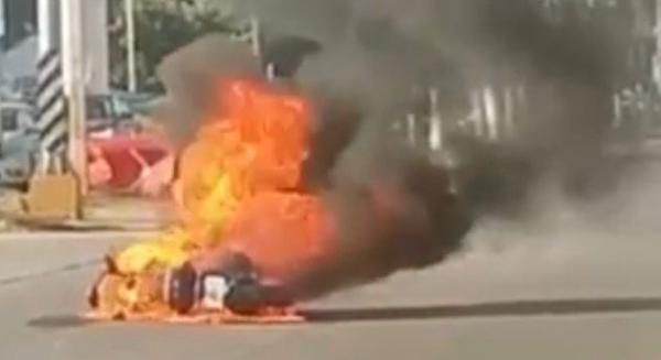 Señalan que la motocicleta circulaba a alta velocidad, cuando el conductor intentó dar vuelta hacia su izquierda terminó derrapando sobre la cinta asfáltica, después la unidad se prendió en llamas.