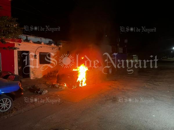 Una camioneta se prendió en llamas sobre la calle 20 de Noviembre entre Praxedis Guerrero y Flores Magón en la colonia 20 de Noviembre de Tepic.