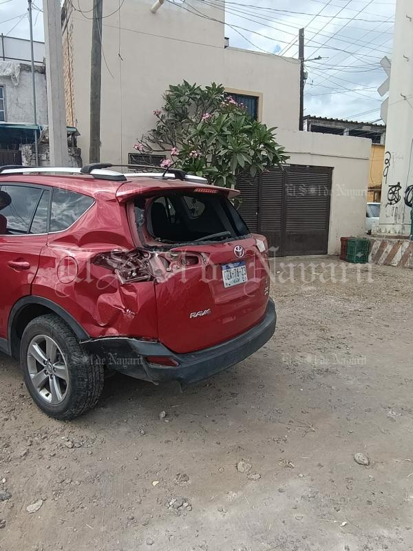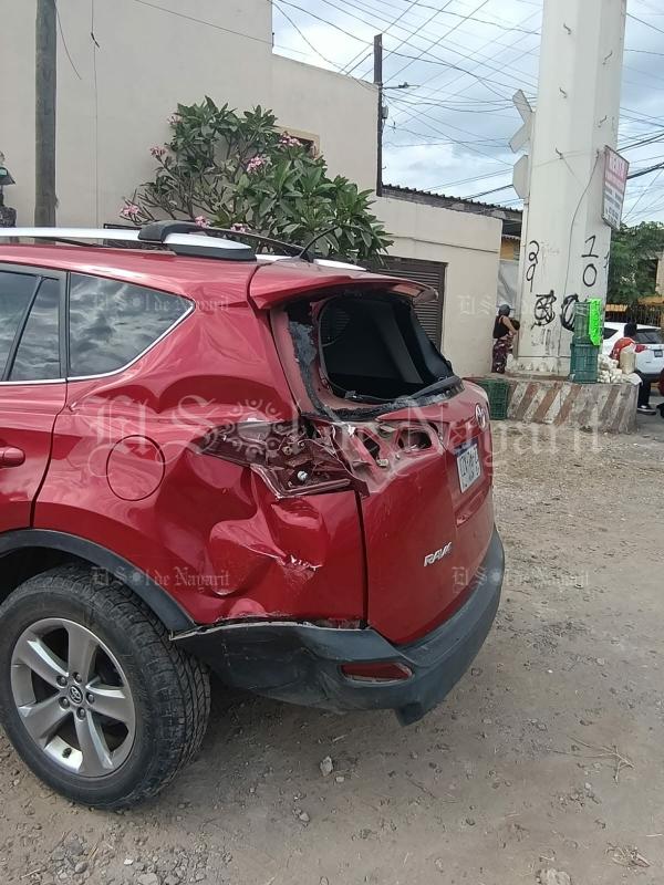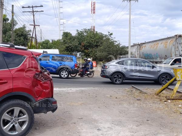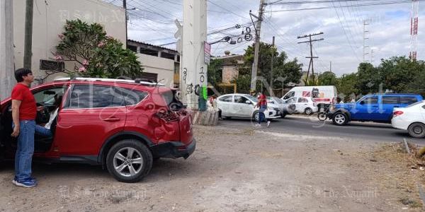 Sobre la avenida Principal a la altura de las vías del tren ocurrió un accidente esta tarde en la capital nayarita, dejando daños materiales.