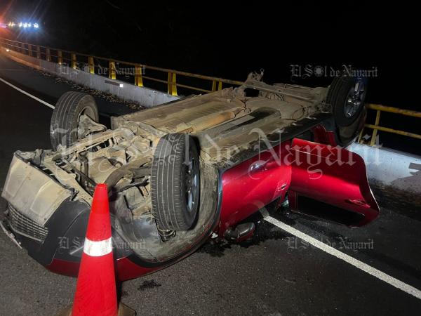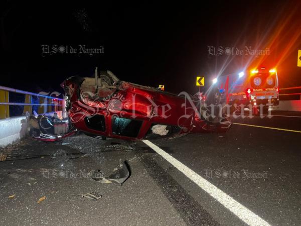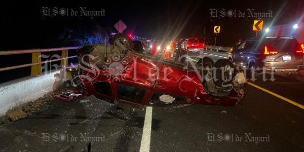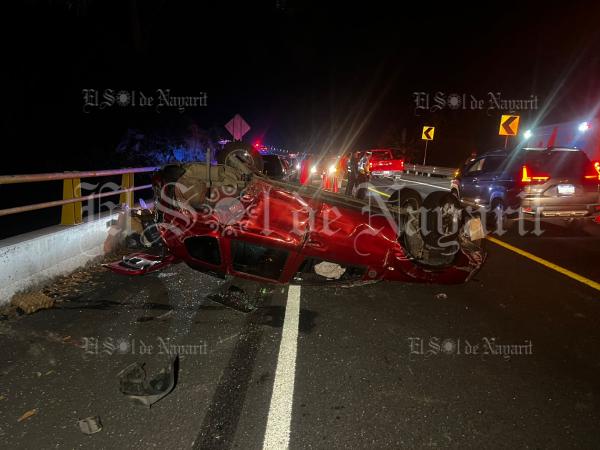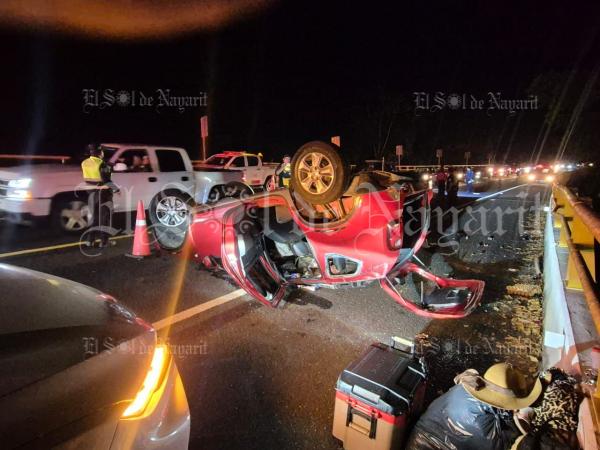 Se registró un aparatoso accidente durante la noche de ayer sobre la autopista Tepic-Matanchén a la altura del kilómetro 21, poco antes de llegar al crucero de Mecatán, dejando el saldo de cuatro personas lesionadas.