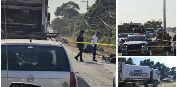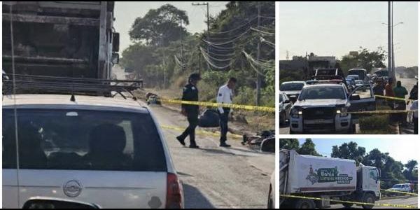 Se trata de un ciclista, quien fue atropellado por un camión recolector de basura, presuntamente perteneciente al Ayuntamiento de Bahía de Banderas.