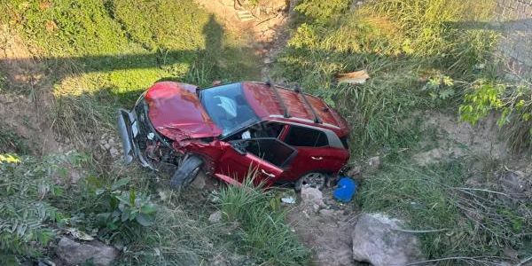 Se trata de un choque de frente entre una camioneta de la marca Hyundai Creta, color tinta y una camioneta Dodge Ram, color negro, tras el fuerte impacto, la camioneta tinta salió de la cinta asfáltica y cayó a un barranco.