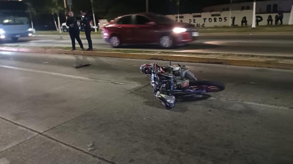 La noche de ayer, el joven motociclista resultó lesionado luego de ser atropellado por una camioneta cuando circulaba sobre la avenida Francisco Medina Ascencio, a la altura de la zona naval.