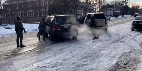 Fuen en defensa propia casi lo atropellaba tan facil que hubiera sido bajarse del carro pero todo rso es politico los democratas le pagan a esa gente para andar de mitotera igual que aqui le pagan a los chairos para anar de hocicones