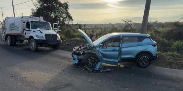 Se refiere que una camioneta azul que era tripulada por dos mujeres y un menor, se impactó brutalmente contra un camión de aseo público cerca del relleno sanitario.