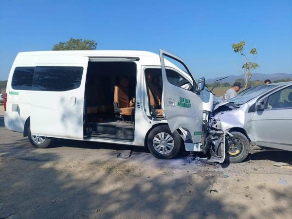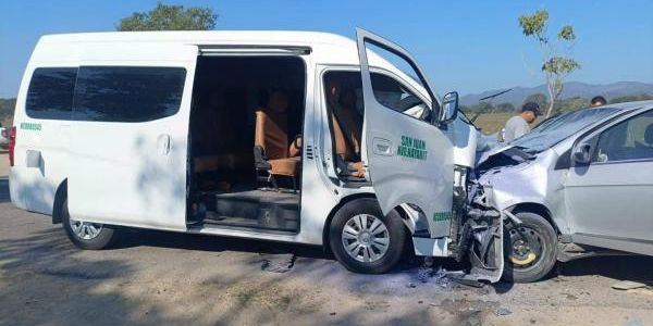 De acuerdo con la información, una combi del transporte público y un vehículo compacto se impactaron de frente mientras circulaban por la carretera ya mencionada.