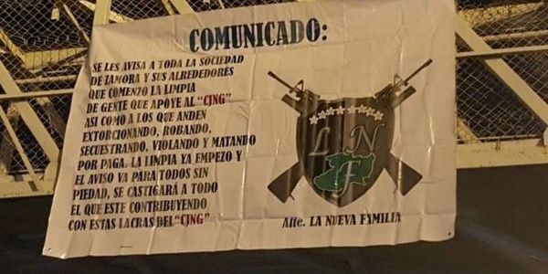 Los mensajes estaban firmados por un presunto nuevo grupo criminal denominado La Nueva Familia, que en uno de sus mensajes señalaba lo siguiente: