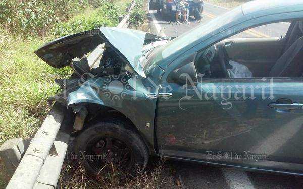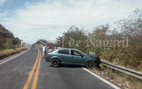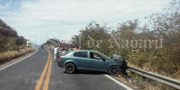Al tomar una curva al parecer invadió el carril contrario y se estrelló contra un automóvil color azul que circulaba hacia Tepic.
