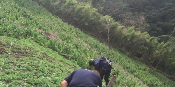 En ese municipio fueron encontrados siete predios cultivados con cerca de 620 mil 200 plantas de amapola.