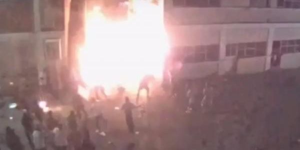 Los participantes en la riña entre grupos contrarios, lanzan al parecer bombas molotov, lo que crea incendios en el lugar; además queman varios colchones y objetos.