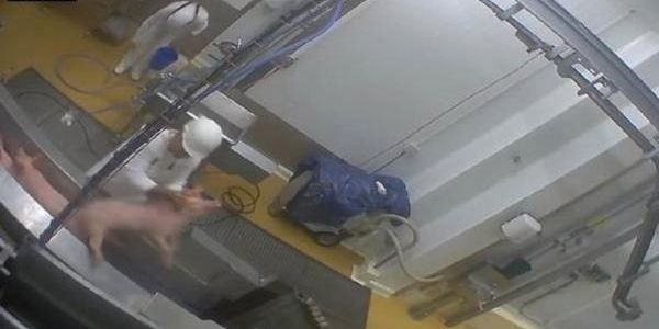 Por su parte, los cerdos son quemados con pinzas eléctricas que supuestamente debería dejarlos inconscientes, pero debido a que la corriente usada no es la correcta, el puerco es torturado por varios minutos, además de ser asfixiados con violencia.
