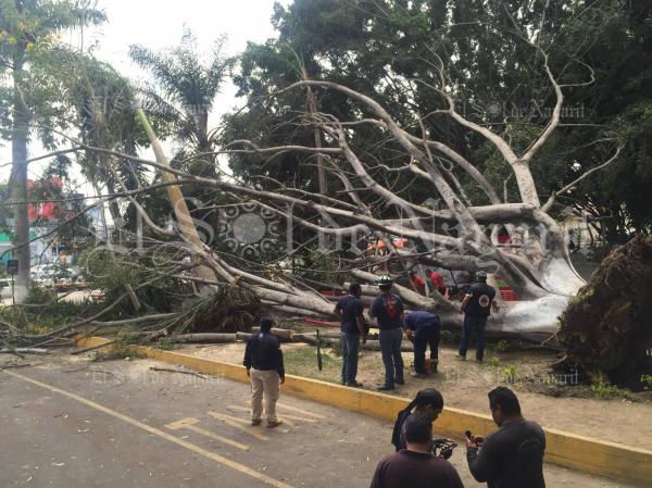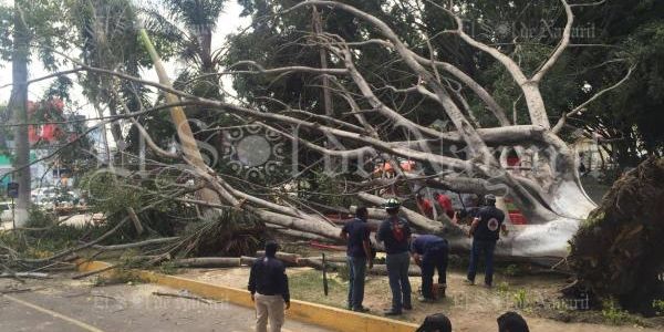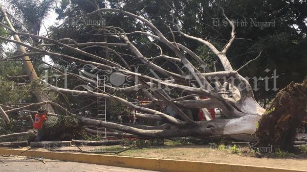 Un pesado árbol cedió ante su peso y al caer dejó a dos personas lesionadas en el parque La Loma de Tepic.
