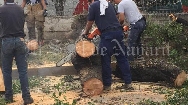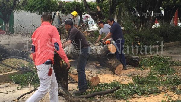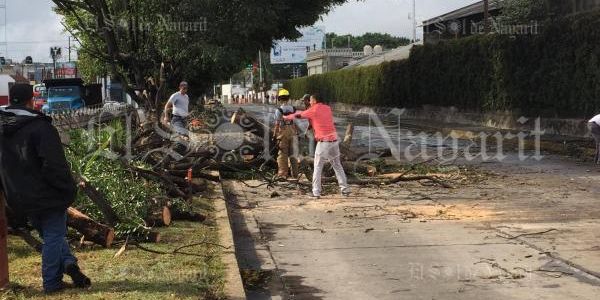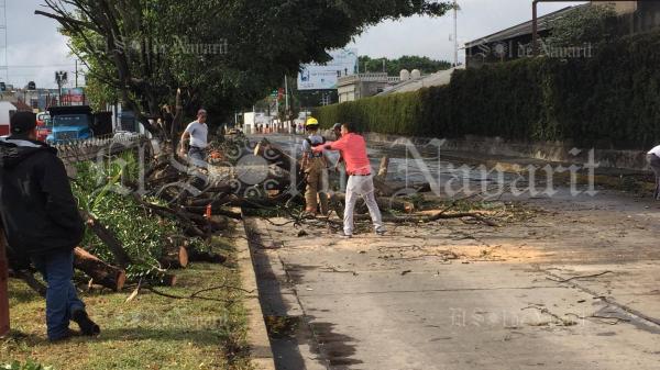 La tarde de este martes un enorme árbol cayó sobre la Avenida Insurgentes, en la ciudad de Tepic, ocasionando que la circulación de vehículos se detuviera.