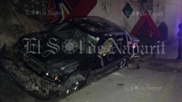 Los hechos se registraron poco antes de las 2:00 de la madrugada de este domingo cuando un hombre de 68 años de edad identificado como Leopoldo Covarrubias circulaba a bordo de su camioneta Avalanch, color negro, sobre Boulevard Tepic Xalisco con sentido de norte a sur y al llegar a la altura del puente del libramiento carretero piso varias boyas, perdiendo el control de la unidad ocasionando una estrepitosa caída hasta la carretera.