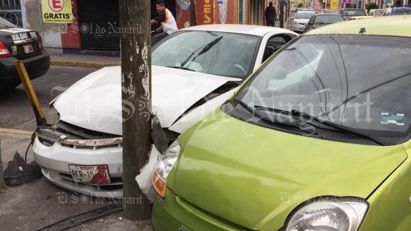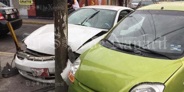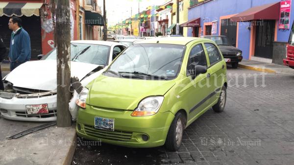 El cruce de las calles León y Amado Nervo, en pleno centro histórico de la capital nayarita, fue el escenario de un accidente automovilístico ocurrido la mañana de este miércoles.