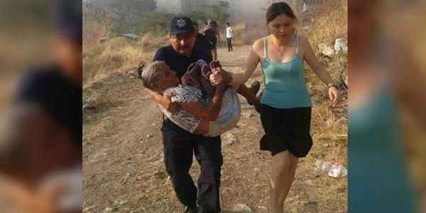 El agente municipal protagonista de la imagen, de nombre Francisco Javier Pérez de la Cruz, entró al domicilio luego que los vecinos le alertaran de la presencia de unas anciana al interior, por lo que la tomó en brazos y la sacó para que no se expusiera al humo ni resultara con quemaduras de gravedad.