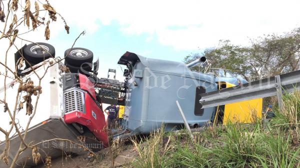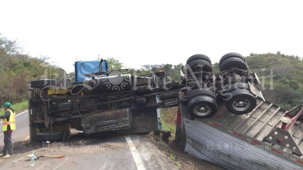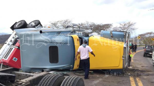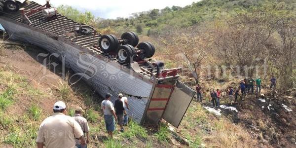 Un aparatoso accidente tuvo lugar la tarde de este viernes sobre la carretera federal número 15, Tepic Mazatlán, donde un tráiler terminó volcado.