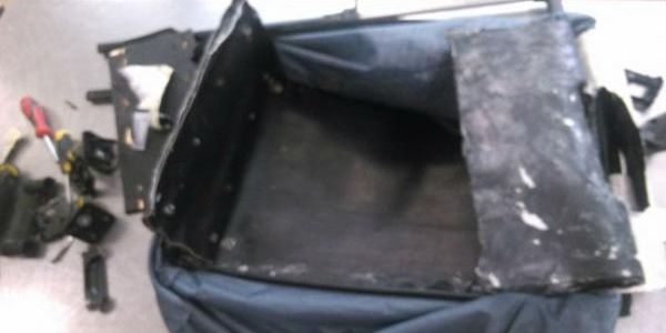 Las autoridades encontraron un doble fondo oculto en el equipaje, donde se encontraba un paquete confeccionado en vinil y caucho, que contenía un polvo blanco con las características de la cocaína.