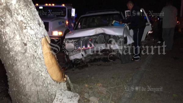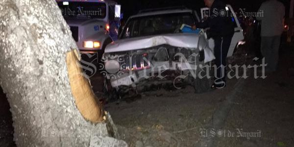 La noche de este sábado se registró un accidente automovilístico, cuando una camioneta terminó impactándose contra un árbol, tras caer en una alcantarilla en mal estado.
