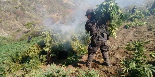 De acuerdo con las investigaciones, en el poblado San Miguel, los agentes encontraron el sembradío de marihuana que contaba con una superficie de 700 metros cuadrados, con un total de 4 mil 200 plantas de marihuana destruidas.