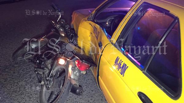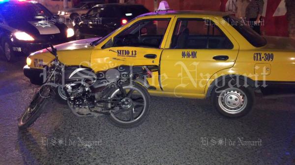 Un joven motociclista fue trasladado a un hospital tras estrellarse contra un taxi en la colonia Los Viveros, en Tepic.