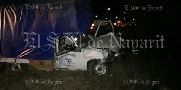 Nuestros reporteros informan que la noche de éste jueves un trailer de la marca Kenworth color rojo que circulaba con sentido hacia Tepic se quedó sin frenos justo al llegar a la caseta de Santa María del Oro, impactando por alcance a una camioneta Nissan tipo estaquita color blanco.