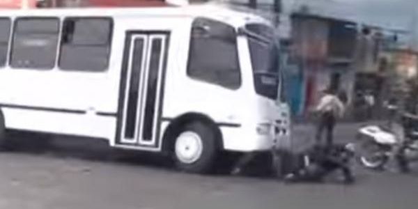 Fue difundido en redes sociales una grabación que muestra el momento en el que un autobús atropella a dos policías jóvenes que se encontraban atendiendo una protesta de estudiantes universitarios.